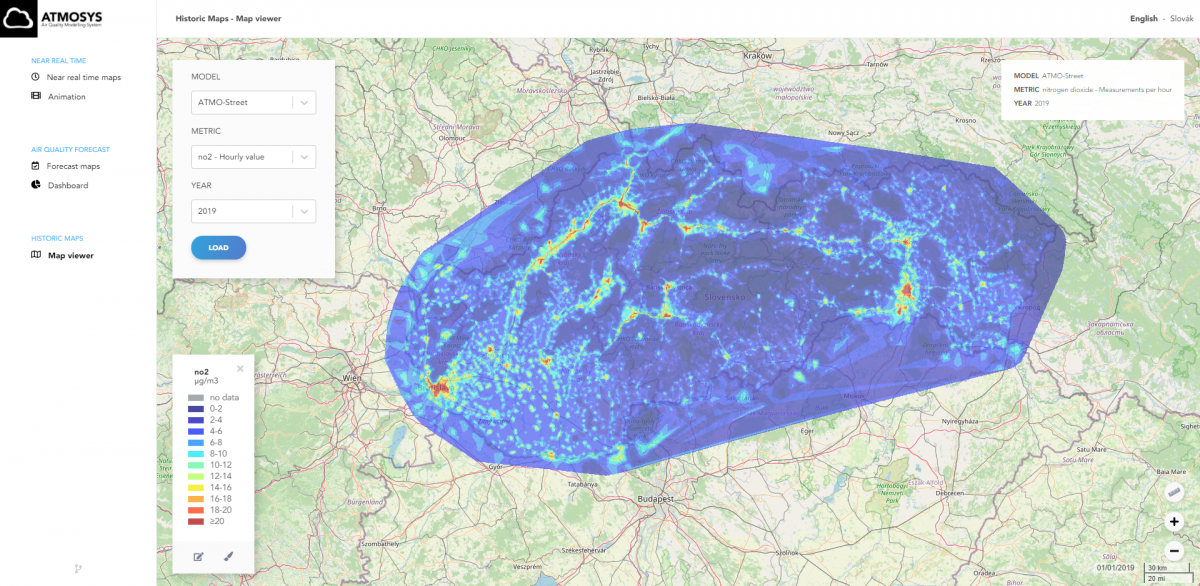 - An operational air quality service, providing near real time and forecasted pollutant maps for informing the general public on the air quality and alerting the winter smog warning system,